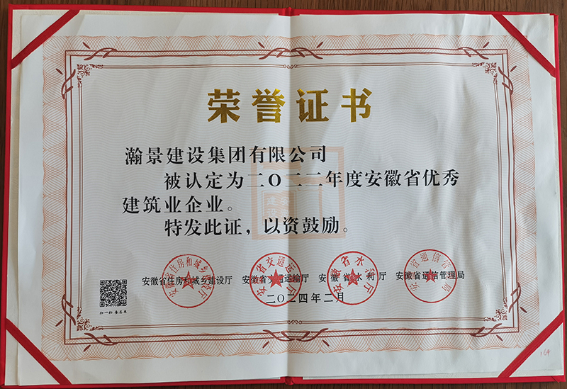 恭喜瀚景建設(shè)集團(tuán)榮獲“安徽省優(yōu)秀建筑業(yè)企業(yè)”